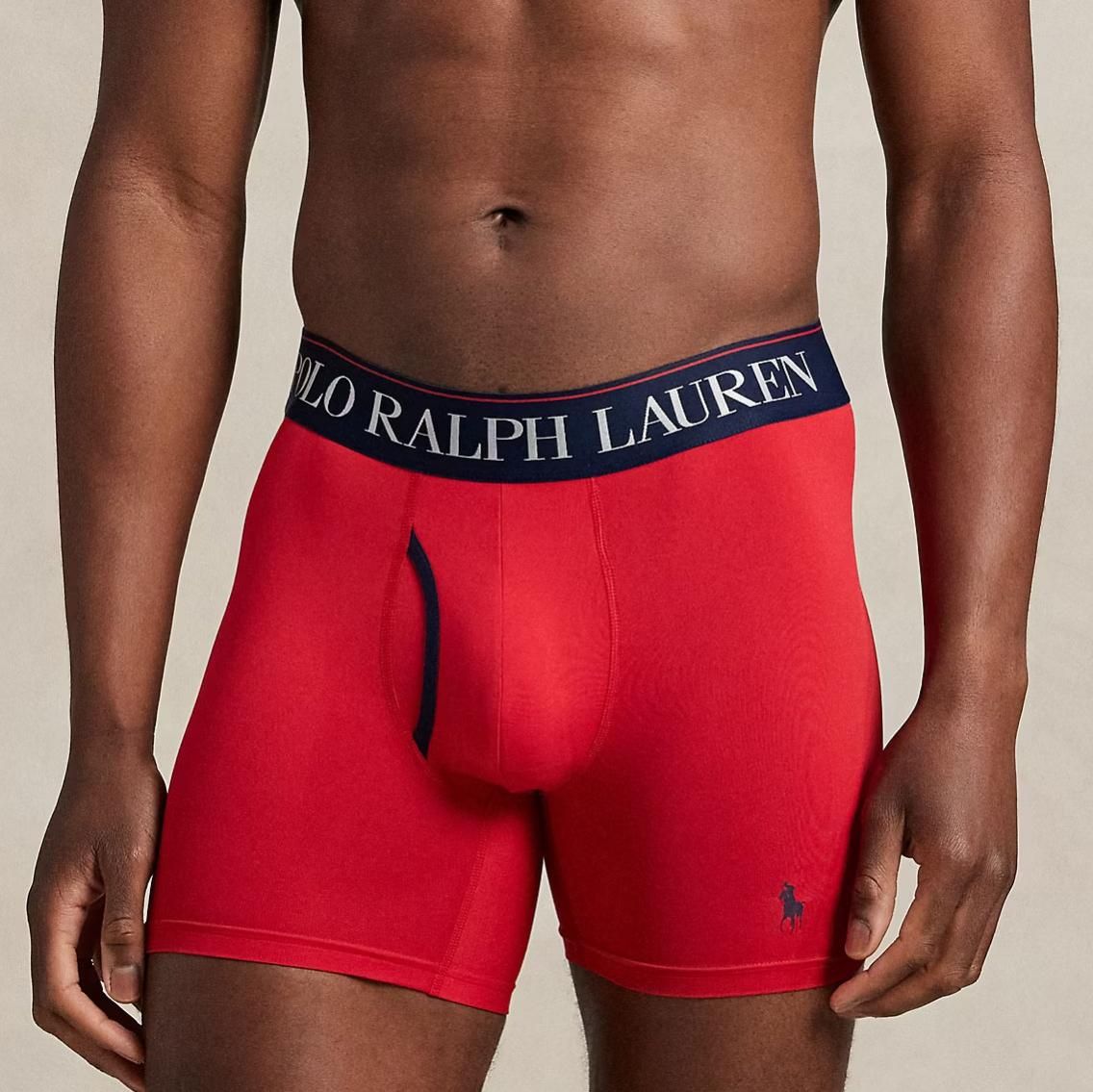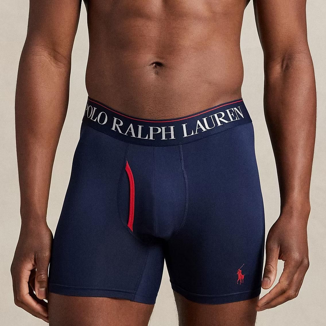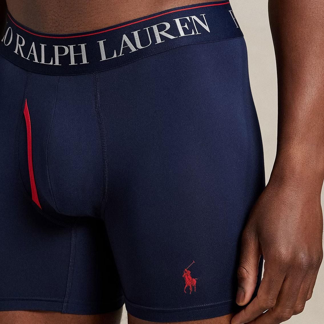 ポロラルフローレン:4D COOLING MICROFIBER ボクサーブリーフ 3PK (クルーズネイビー/レッドエンブレムプリント/RL2000レッド)
