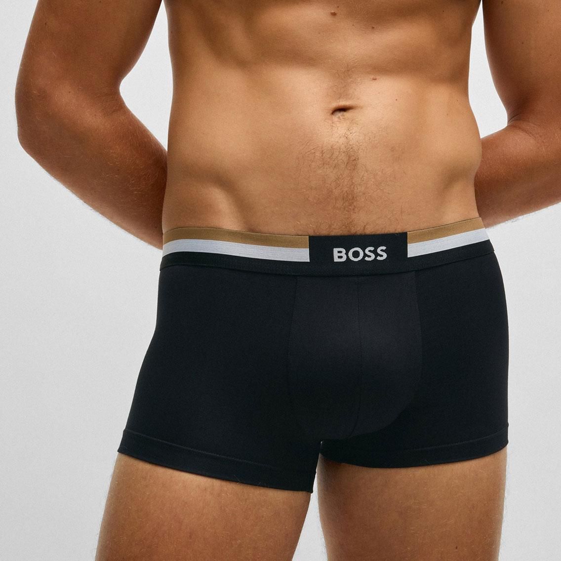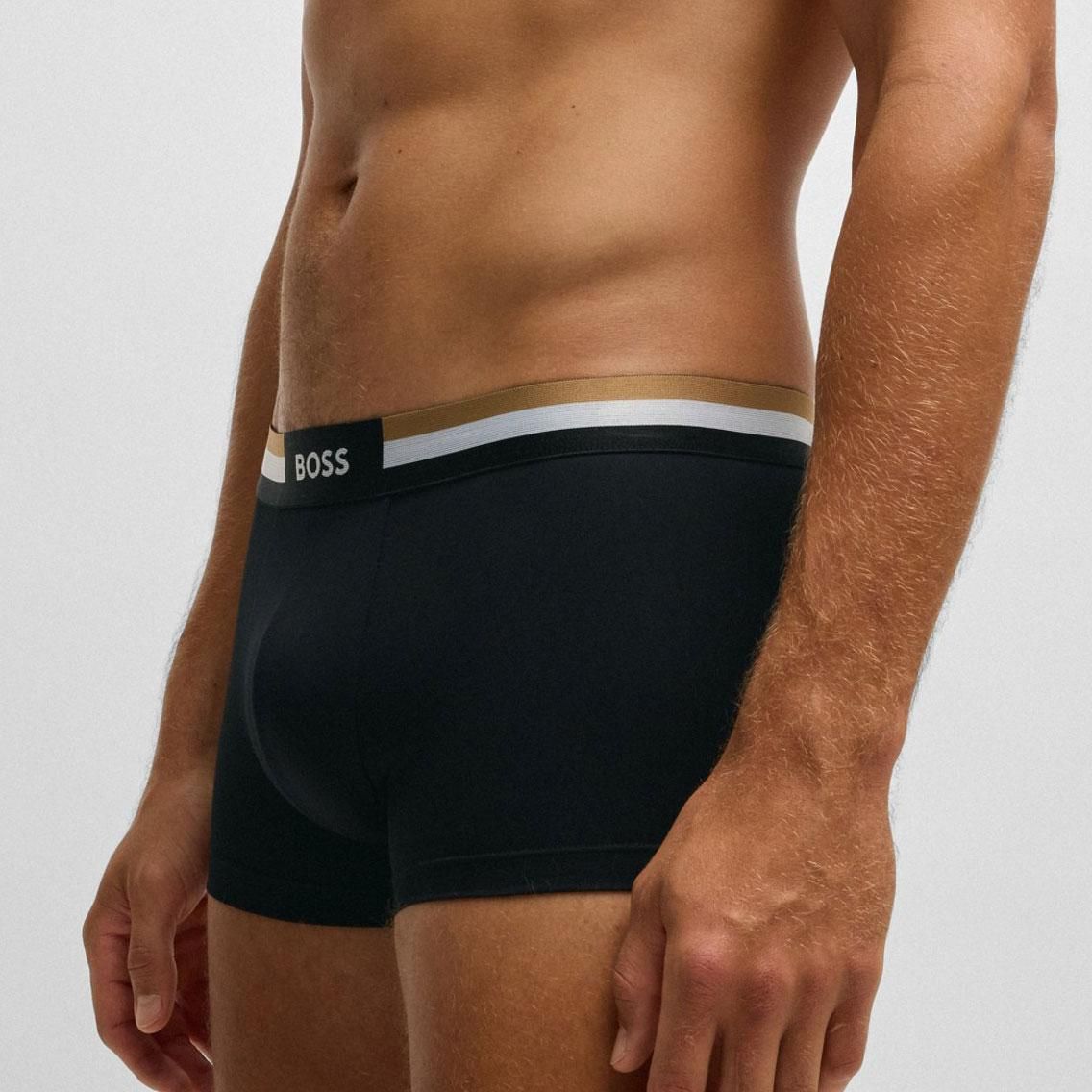 涼しくドライな着心地を提供する、BOSS メンズウェアのトランクス3枚セットは必須の投資品です。シグネチャーストライプのロゴ入りウエストバンド。吸湿発散性に優れたストレッチコットン混紡素材。