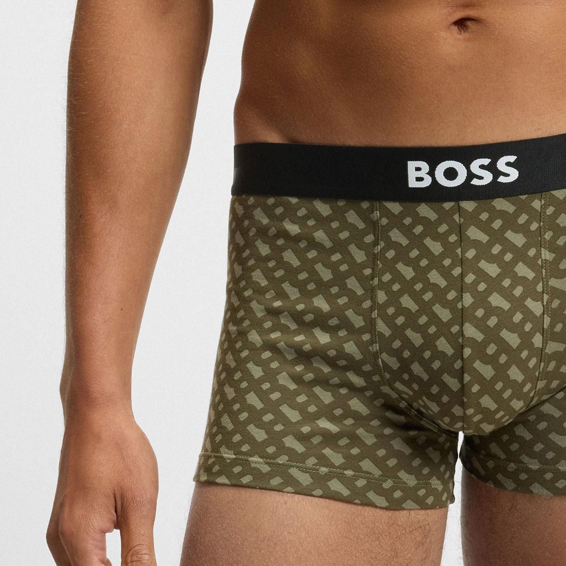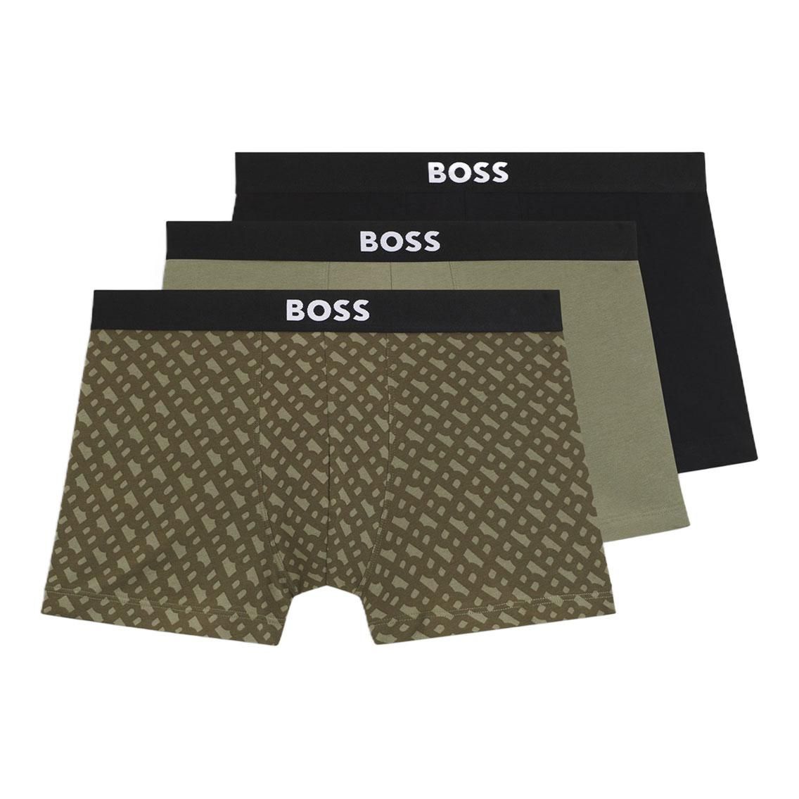 ロゴ入りウエストバンドと柔軟なストレッチコットンジャージーを採用した、BOSS メンズウェアのトランクス3枚セットは日常使いに欠かせないアイテムです。無地とプリントデザインをご用意。